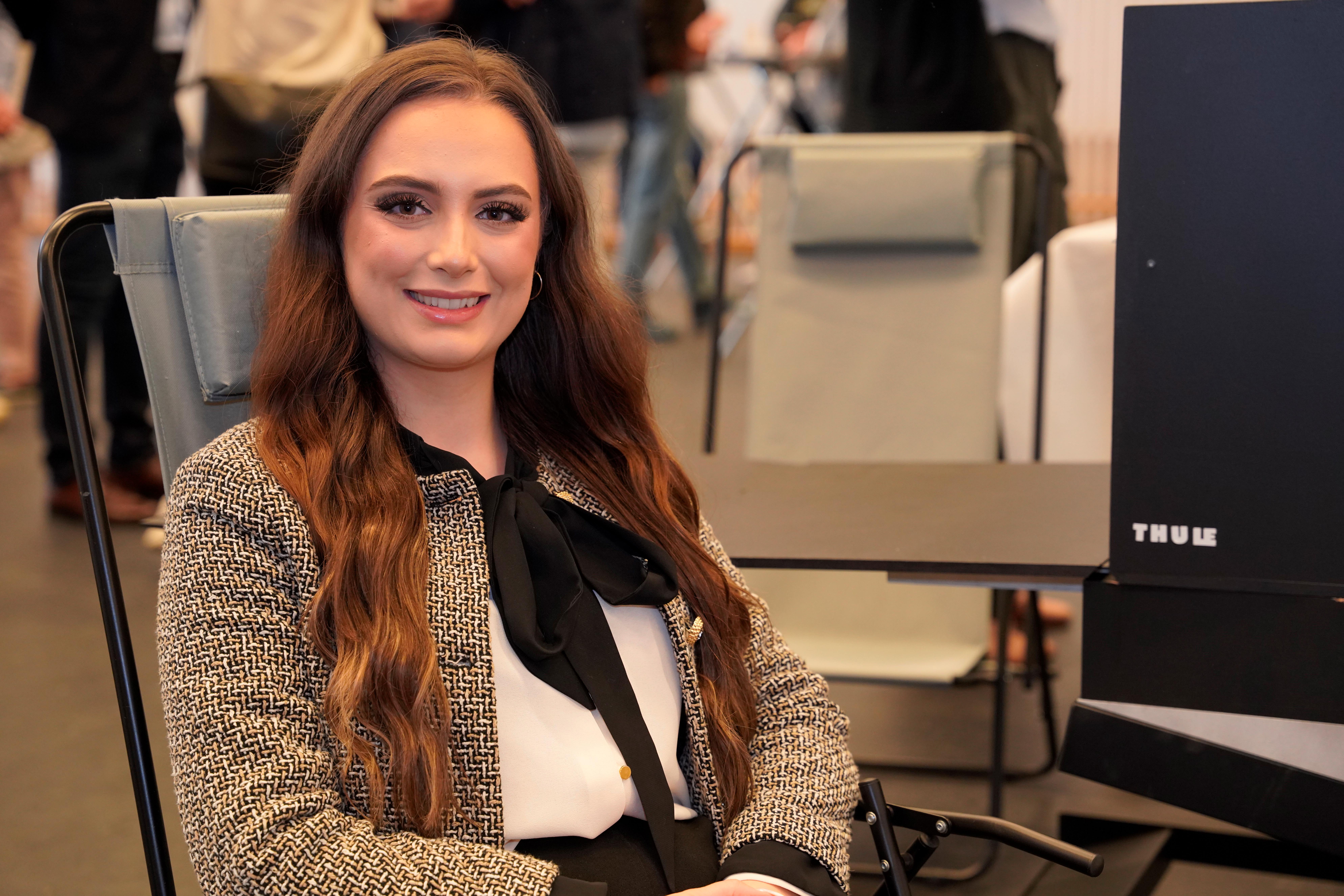 Alexandra has designing the armrests and showed off a prototype of them at Xjobbsmässan.