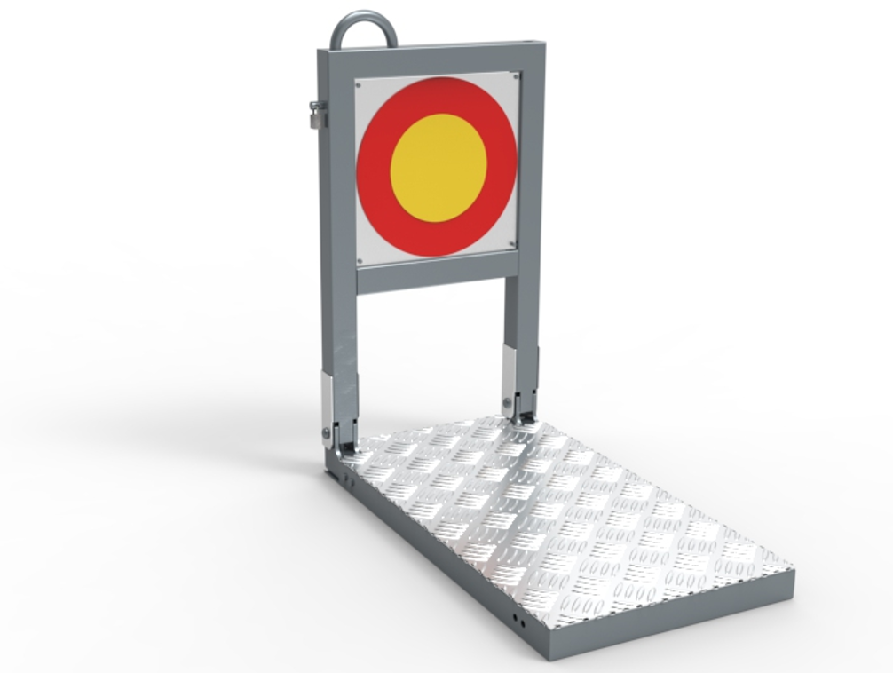 En fordonsbarriär som ska användas i anslutning till en gågata måste uppfylla fler funktioner än att endast kunna stoppaett fordon. Den måste även ge enkel passage för fotgängare, kunna släppa förbi utryckningsfordon och varuleveranser, och den behöver passa in visuellt. Barriären stoppar fordon genom sin speciella L-form. Formen innebär att när ett fordon kör på barriärenkommer den tippa bakåt och leda om kraften från kollisionen genom sin konstruktion till att verka på underredet på attentatsfordonet och på så vis oskadliggöra det. Eftersom barriären leder om kraften istället för att absorbera kraften kunde den utformas av tunnare profiler vilket möjliggör den att manövreras utan hjälp av motorer. Konceptet är modulärtoch kan monteras ihop i större barriärsgrupper.Genom att placera grupperna med tillräckligt stort mellanrum mellan varje barriärsgruppkan fotgängare enkelt passera förbi. För att minimera fallrisken för de personer som rör sig på området är den nedre delen av barriären nedgrävd i marken och täcks utav en platta. Den mest unika funktionen med barriären är hur den tillåter behöriga fordonsom varuleveranser att passera. En hävarm som går genom barriärens övre del och ned i markinfästningen låser den i stående läge, genom att dra ut den sprint som låser hävarmen på plats kan hävarmen lyftas ur markinfästningen vilket tillåter överdelen att fällas parallellt mot marken. Det behöriga fordonet kan då passera över barriären med hjulen på var sida om den. Genom att integrera en trafikskylt i designen passar den in visuellt i miljön, samt uppfyller en sekundär funktion.